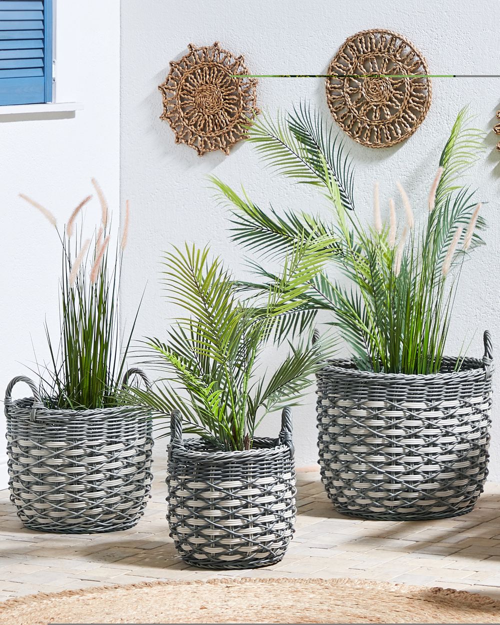 Set Of 3 Pe Rattan Plant Pot Baskets Grey And White Gefira Beliani Co Uk